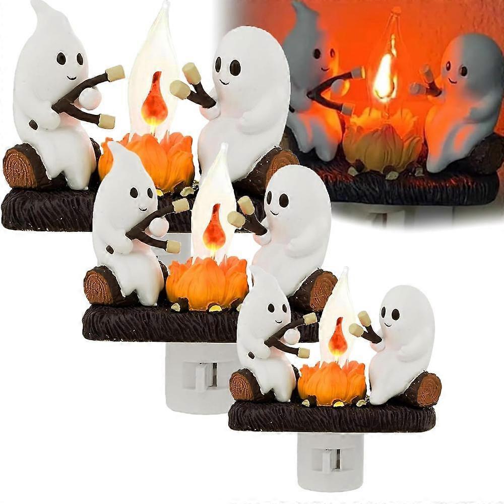 Ghost Campfire Flickering Night Light, Ghosts Campfire Flicker Flame Halloween Nightlight, 3D LED Small Electric Faux Campfire Night Light, Halloween