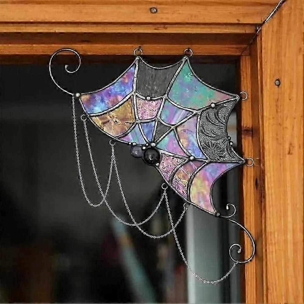 Spiderweb Door Topper,Spider Webs Stained Glass Window Wall Hanging,Door Frame Ornament for Vacation Bedroom Livingroom