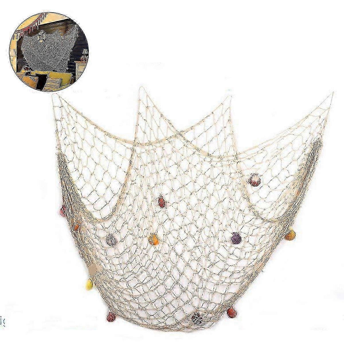 Handwoven Cotton Fishing Net, Versatile Photo Background For Nautical Theme Decor, 150*200Cm Decorative Shells With Mediterranean Sea Amorous