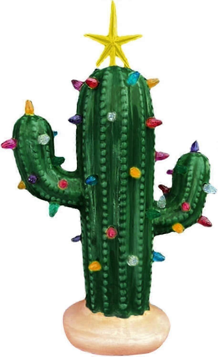 Cactus Christmas Tree with Lights Lighted Resin Ceramic Christmas Tree Vintage Christmas Cactus Deco