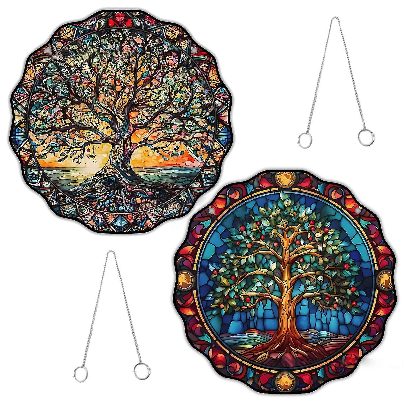(Colorful tree A + Colorful tree B) 2pcs of creative colorful tree double-sided painted pendants, entrance doors, walls, windows, festive atmosphere d
