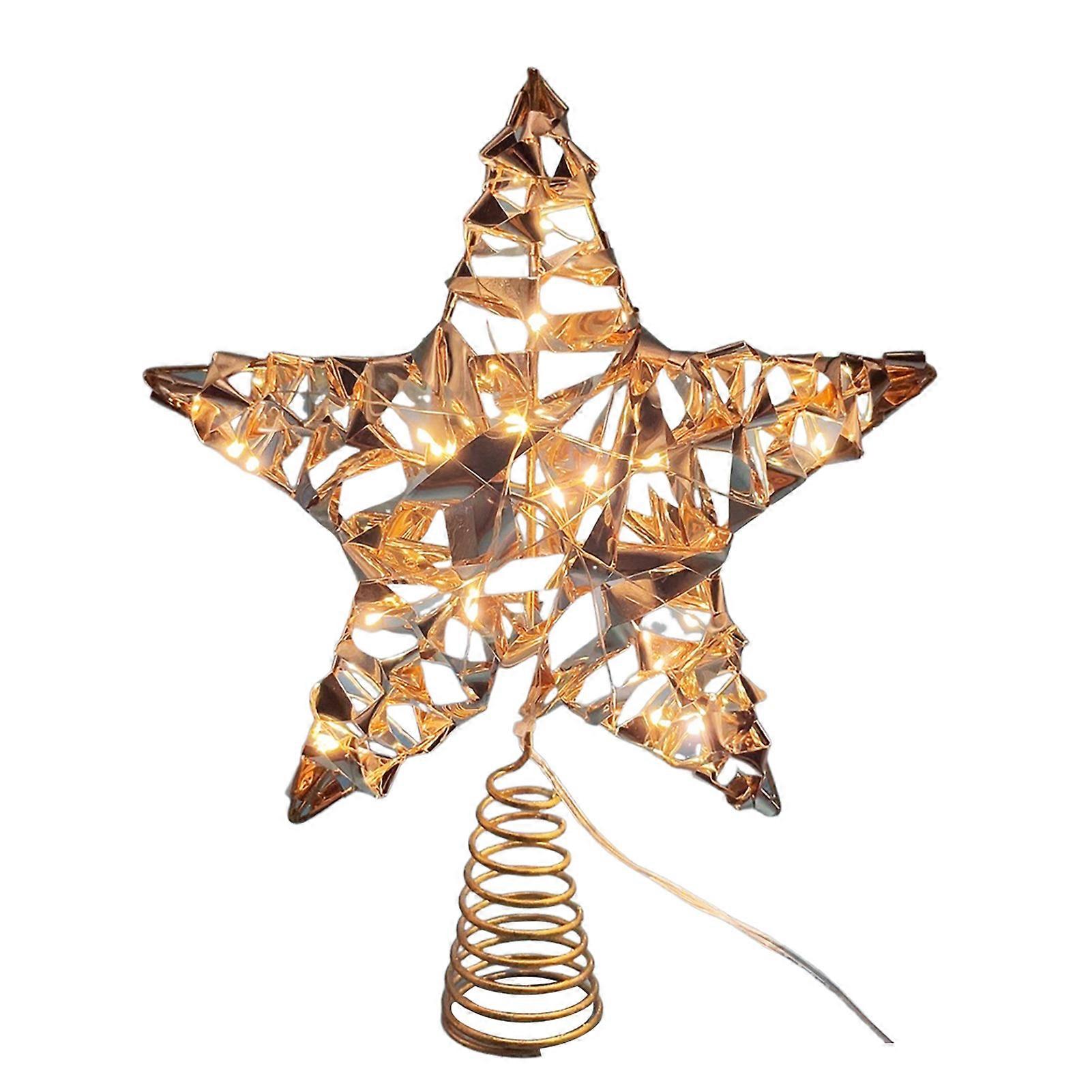Christmas Star Tree Topper Glowing 3D Star Light Decoration with On/Off Switch Battery Operated Hollow Iron Star for Indoor Christmas Tree Decoration