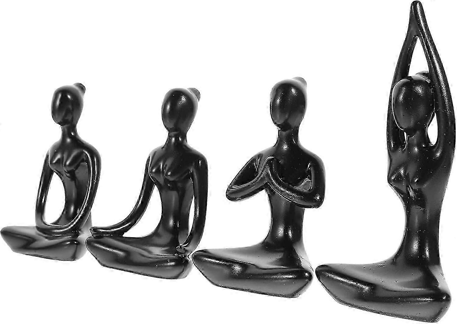 Resin Yoga Figure for Spiritual Room Shelf Zen Decor - Botao Meditation Yoga Pose Statue Figurine - Accent Yoga Decor for Shelves (4pcs, Black)