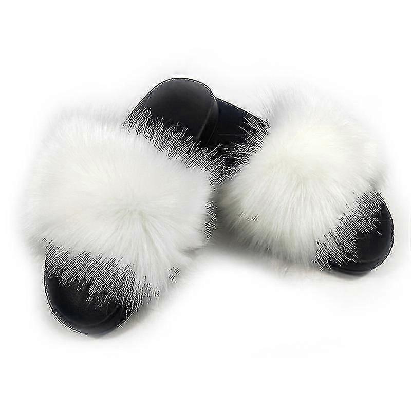 Multicolors Women's Faux Fur Slides, Open Toe Cute Fur Slippers, Comfortable Fur Sandals With Fluffy Fur