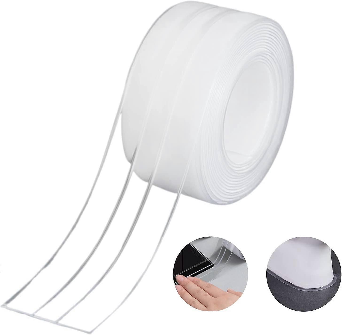 Waterproofing Strip,Bathroom Seal Double Fold Silicone White Self Adhesive Tub Tape/Waterproof Mildew Cockroach Prevention for Kitchen Sink 38mm * 3.2