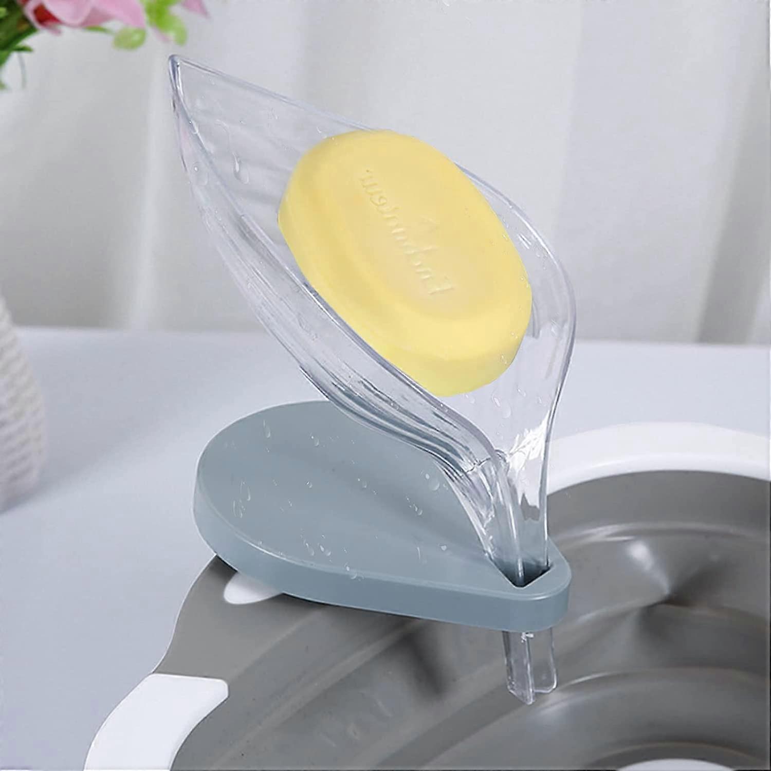 Bar Soap Holder Leaf Shape - Self Draining Soap Dish for Bar Soap, Decorative Plastic Soap Tray, Soap Box with Suction Cup