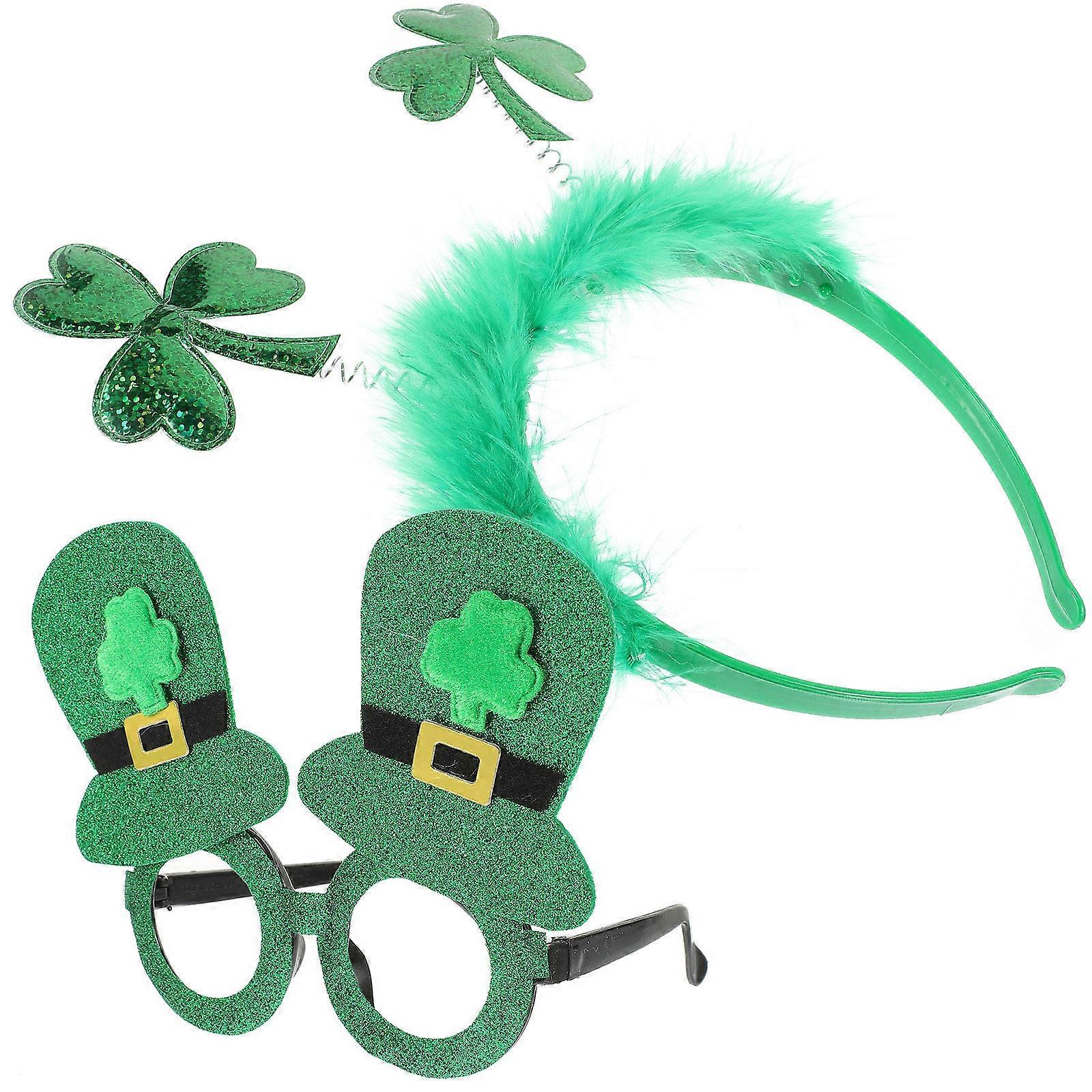 St Patrick's Day Hairband and Glasses Set Party Decorations Green Plastic Lightweight Comfortable