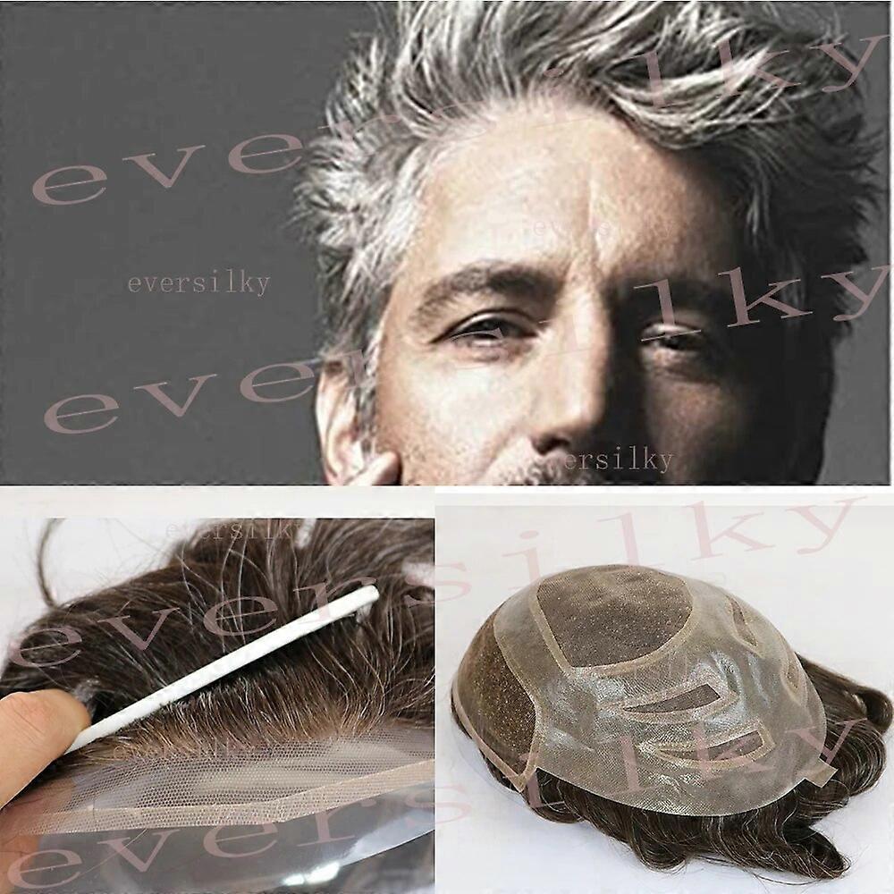 Natural Hairline Mens Toupee Grey Human Hair Prosthesis Super Durable Breathable Lace Front Male Replacement Bleach Knot System