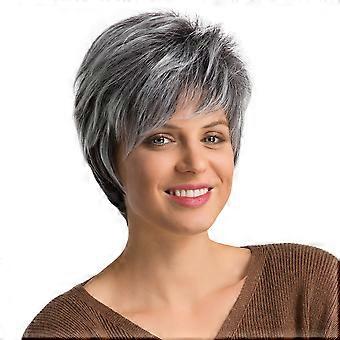 Short Silver Gray Hair Wigs for Women Fiber Pixie Curly Wig 1 with Bang Natural Daily Hair Perfect for Cosplay, Dinner and Daily Wear
