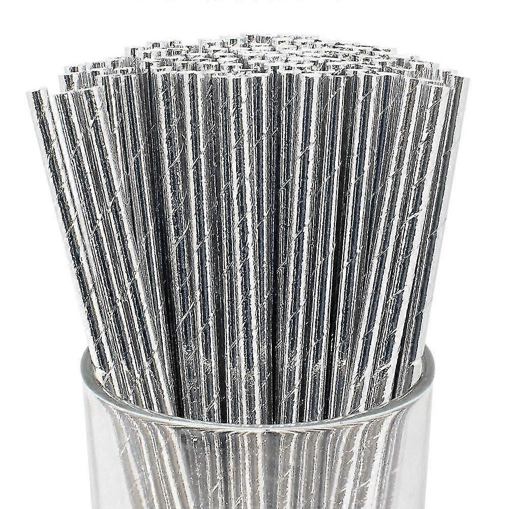 Disposable Drinking Paper Straws (200pcs, Metallic Silver)