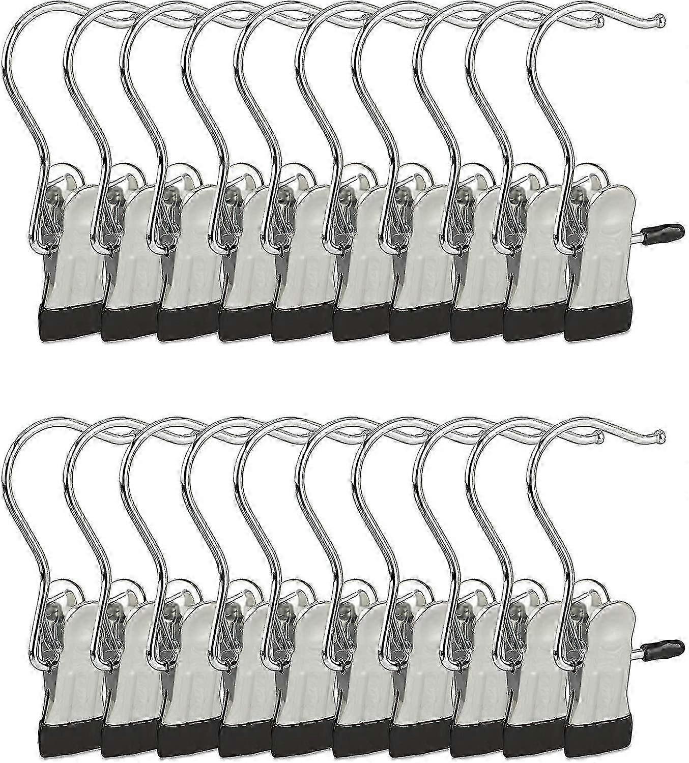 Hanger Clips Hanging Hooks Metal Rubber Set Of 20 Hxwxd: 10.5x5x2 Cm, Silver/black p2024112630