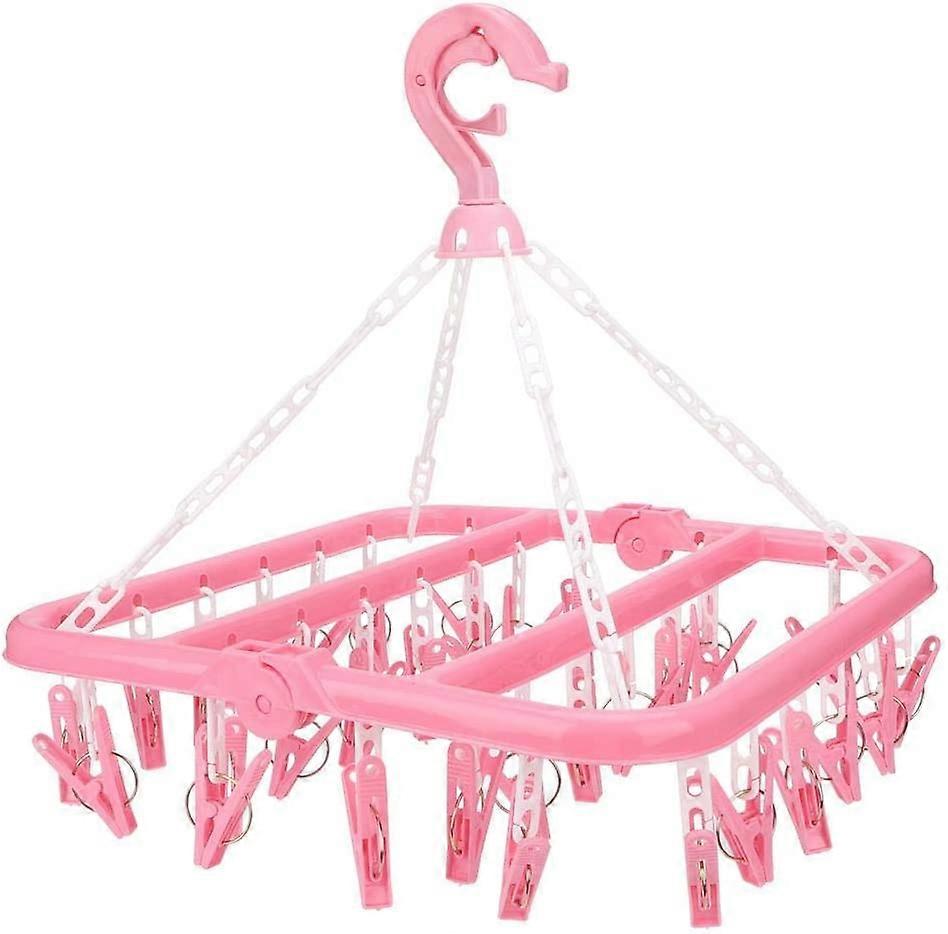 Underwear Hanger with 32 Clips Foldable Clothes Peg Drying Rack Windproof Hanger for Baby Clothes Socks Bras Underwear Towels (Red)