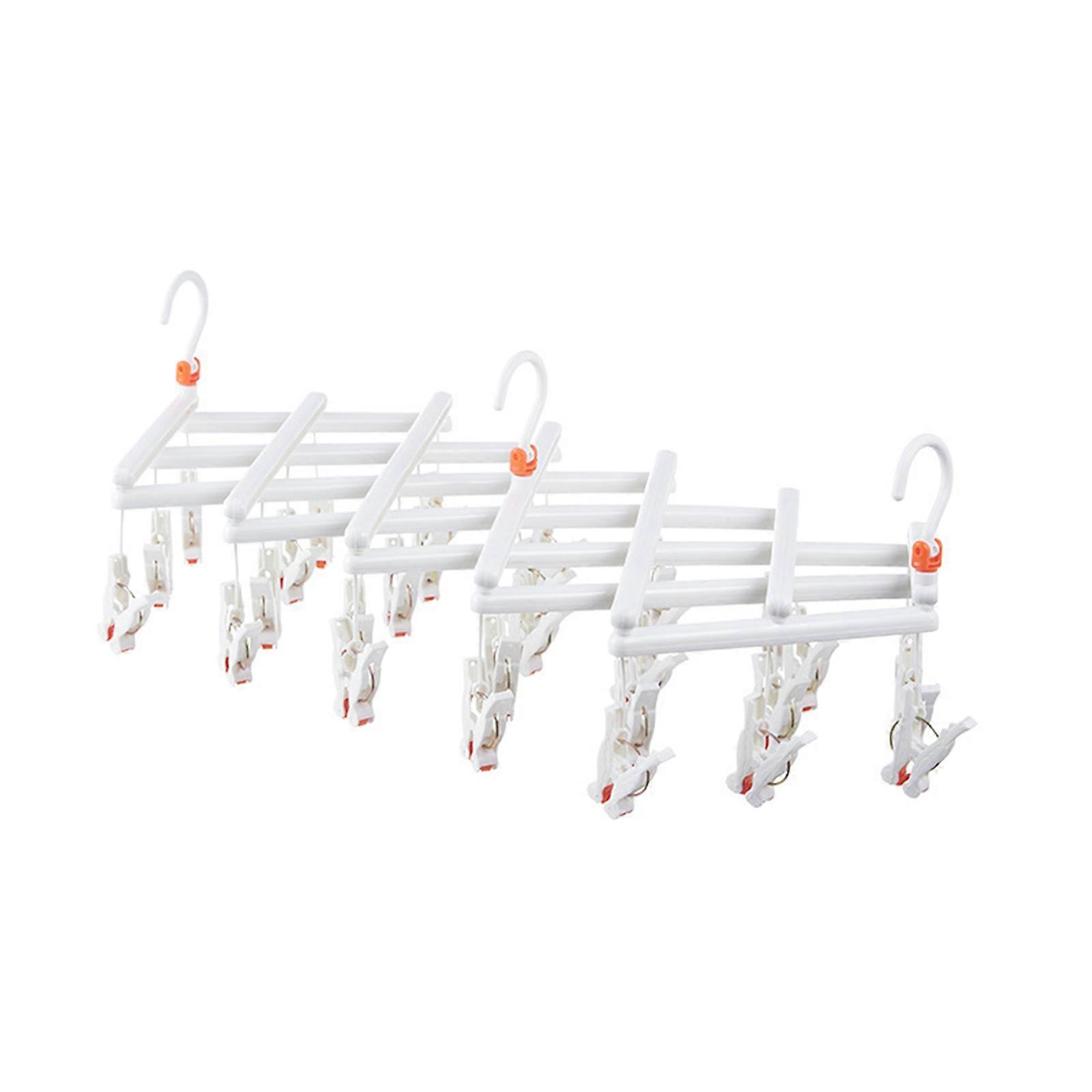 Folding Clothes Hanger 14/19/29 Clips Storage Rack Telescopic Hangers White