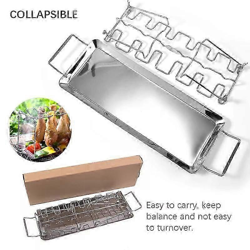 BBQ Beef Chicken Leg Wing Grill Rack 14 Slots Stainless Steel Barbecue Drumsticks Holder Oven Roaster Stand with Drip Pan Tools