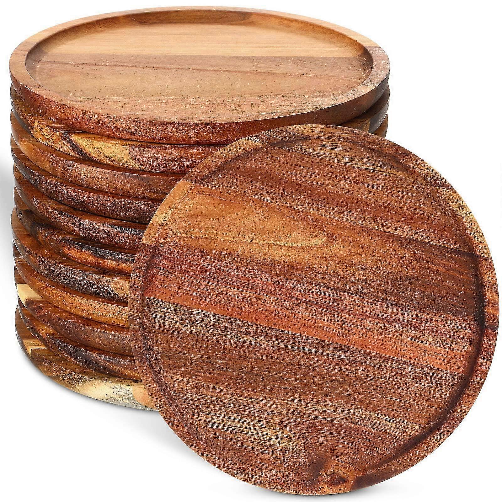8-Inch Wooden Round Chargers for Dinnerware, Ideal for Meals, Snacks, and Desserts, Easy to Clean, Set of 12