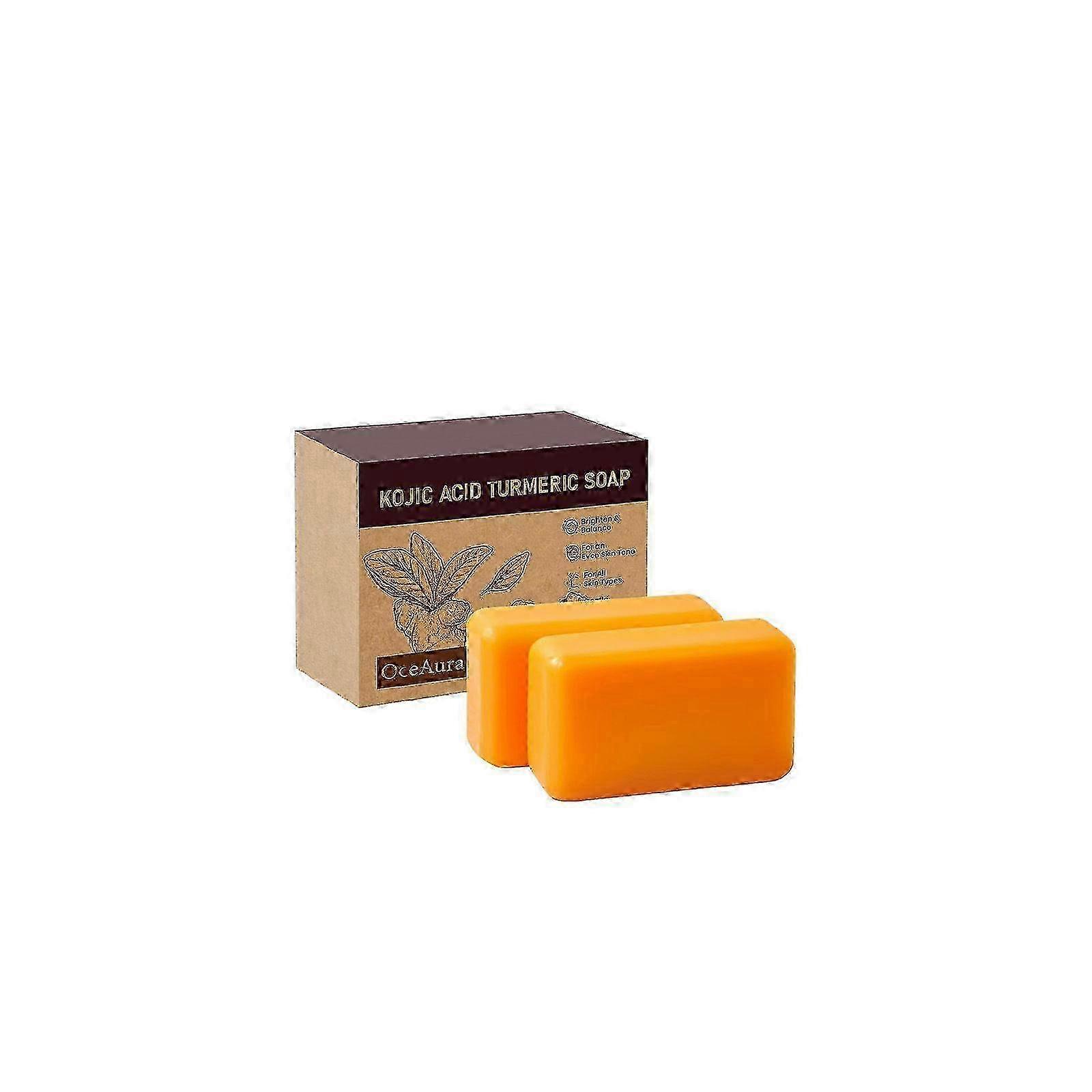 Kojic Acid Soap, Turmeric Soap Bar for Dark Spots Brightening & Moisturizing with Collagen, Retinol, Hyaluronic Acid, Shea Butter, 100g x 2 Bars
