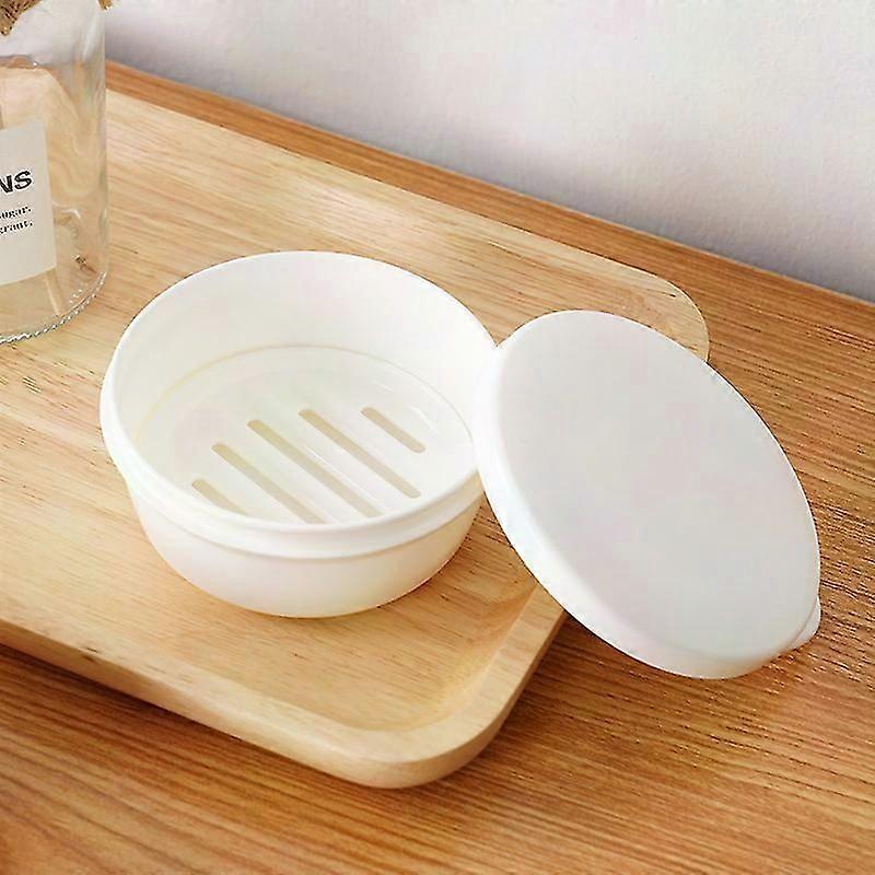 Round Plastic Soap Dish with Lid - Travel Soap Case for Kitchen & Bathroom, 9cm with Drying Diaper