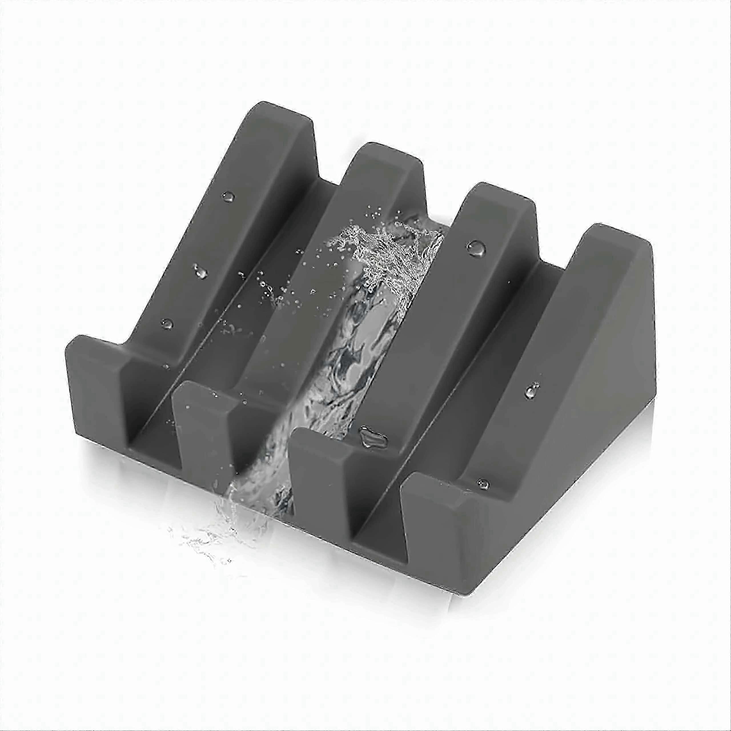 Modern Silicone Soap Dish - Non-Slip - Stylish Design Soap Holder for Bathroom or Kitchen - Sloped Surface with Water Drain for Better Soap Storage