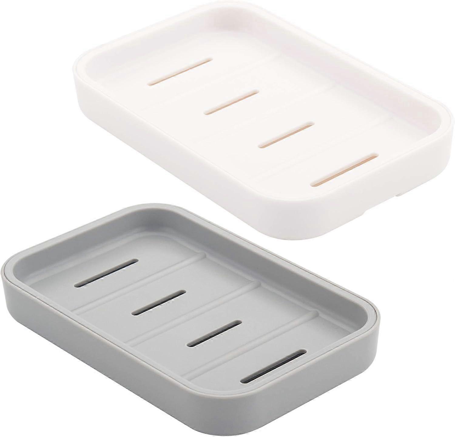 Plastic Square Soap Dish, Bar Soap Holder for Shower room, Kitchen - 2 Pack, White and Grey