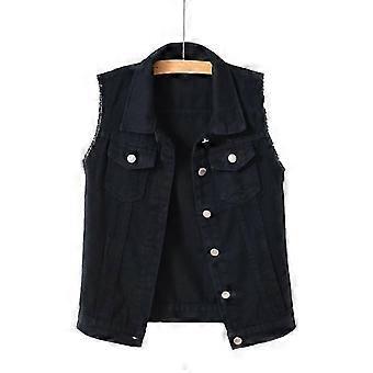 "Cowboy Waistcoat Women's Short Spring and Summer Plus Size Raw Edge Sleeveless Jacket Hole Breaking Cardigan"
