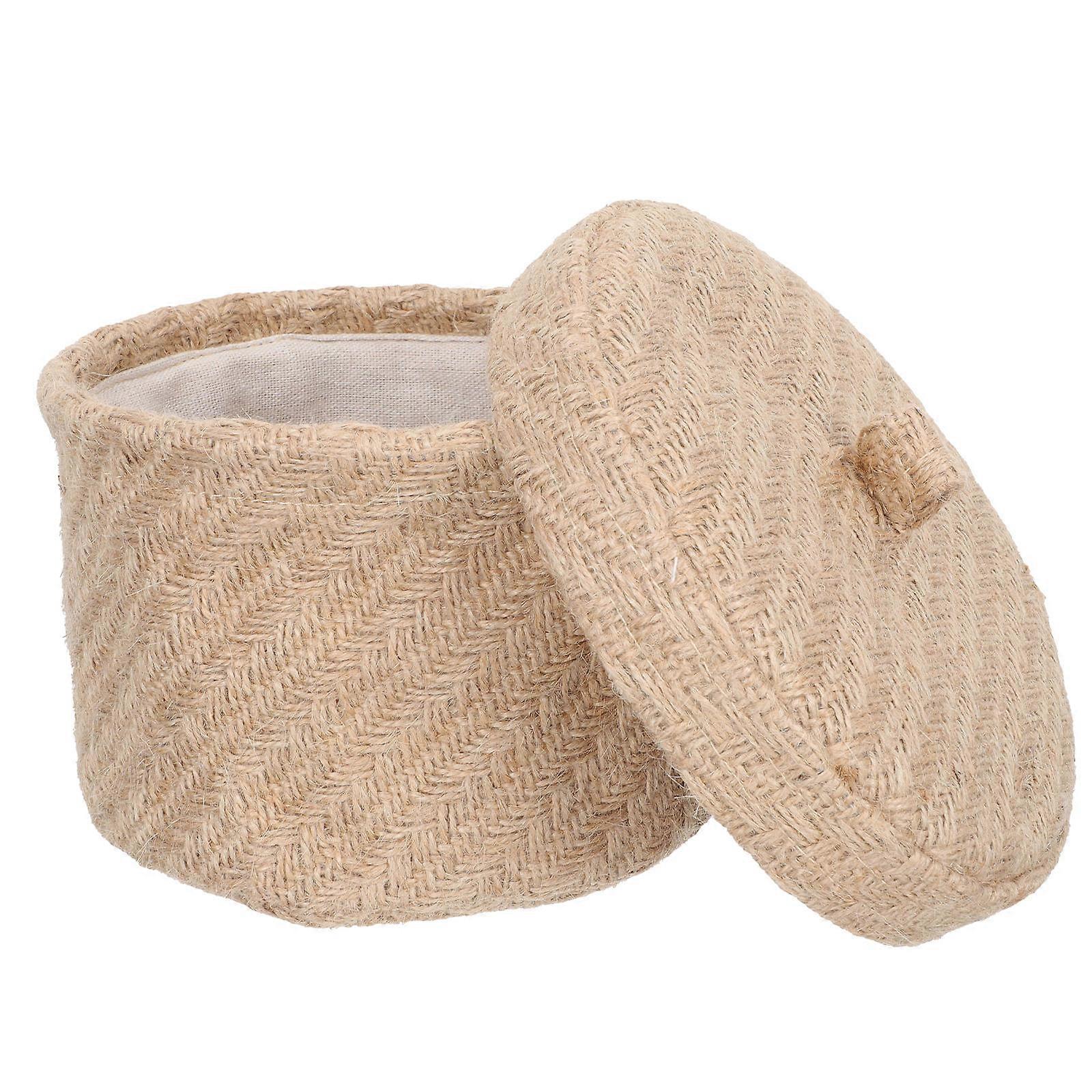 Woven Storage Boxes Sundries Organizer Household Users Cosmetic Storage Jute Material Round Cylinder Shape 1Pack