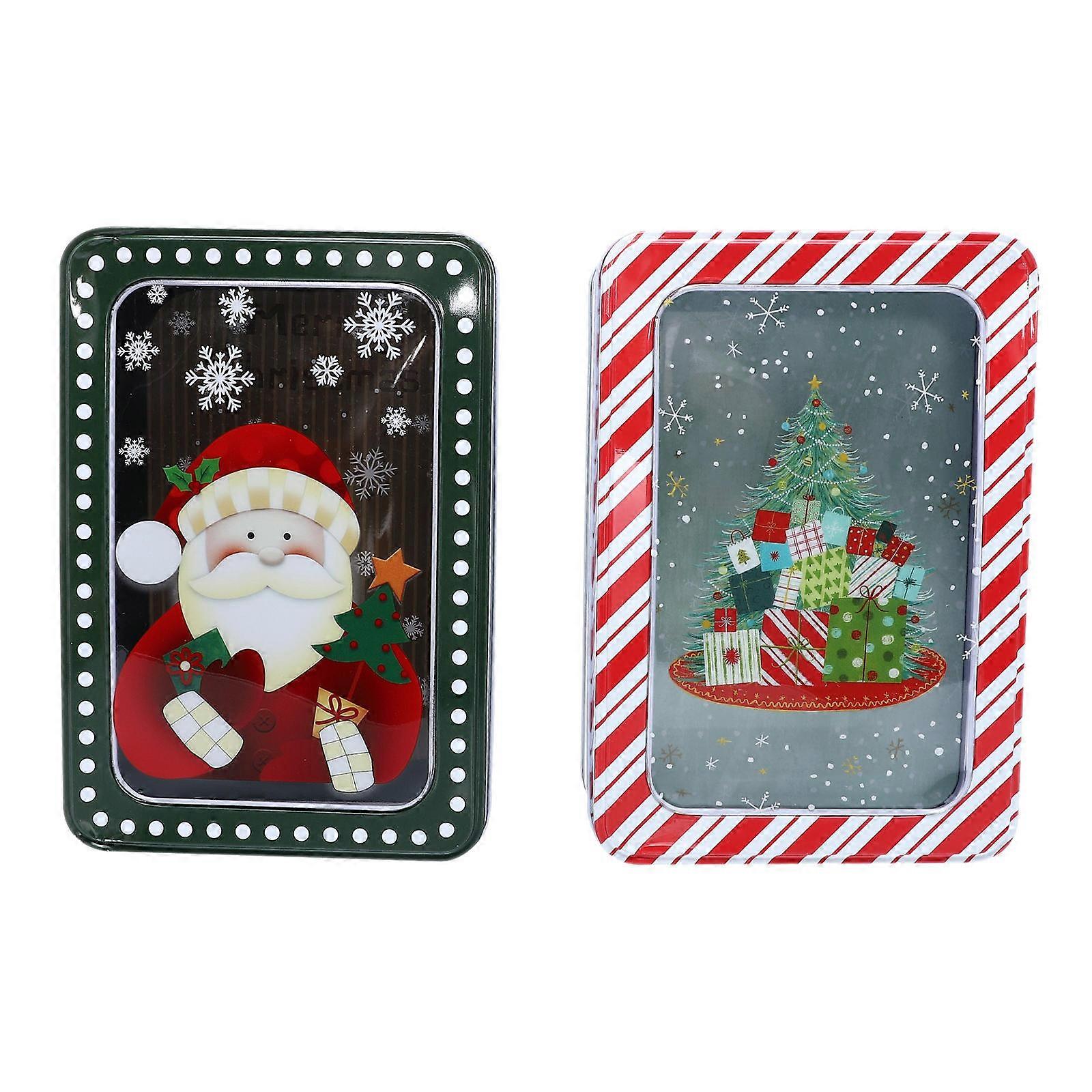 Boxes Metal Xmas Tin Cans Christmas Theme Food Storage present Wrapping 2Pcs