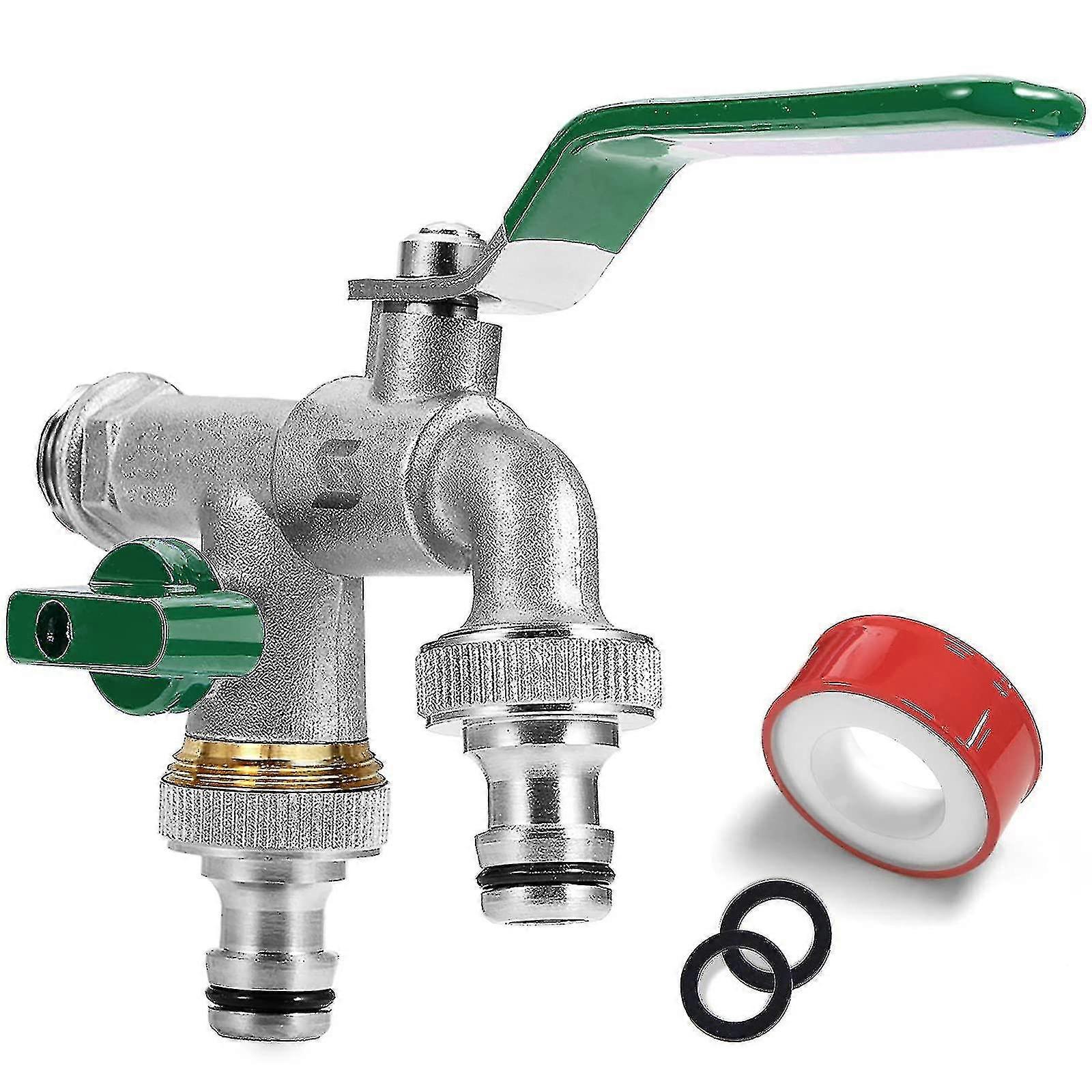 Garden Faucet, Double Outlet Tap 1/2 Inch, Ust And Frost-proof, With 2x 3/4 Inch Outlets,compatible Garden (green)
