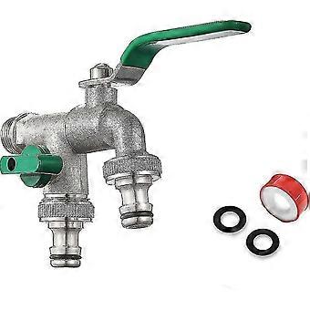 Premium Brass Double Water Tap, 1/2' Inch Garden Tap Double Water Tap With 2 Hose Connectors, Rust And Frost-proof