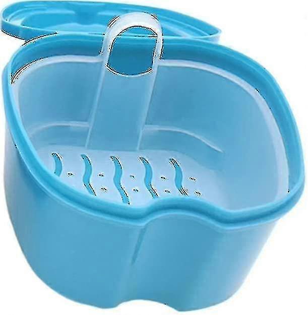 Denture Box With Basket Blue Dental Appliance Storage Box Compatible With Mouthguard Light Blue