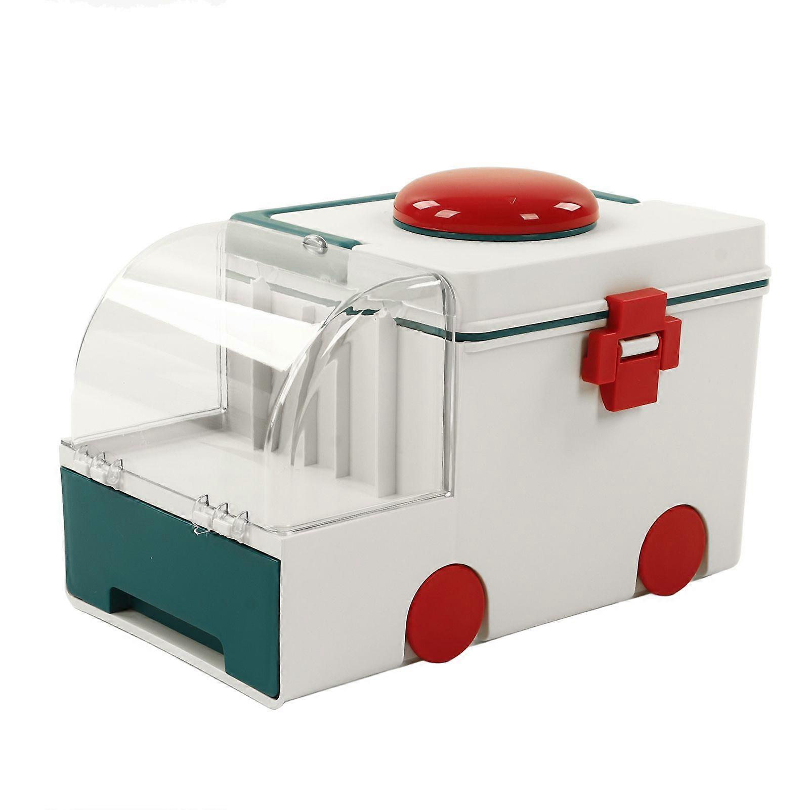 Medicine Box Cute Ambulance Shape Double Layer Large Capacity Medicine Storage Box with Portable Handle Green