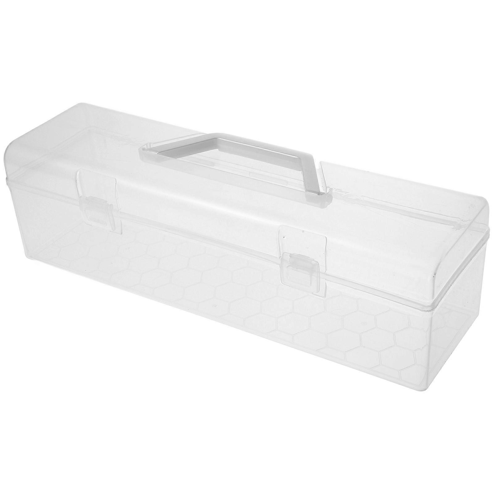 Clear Thickened Plastic Storage Box with Handle & Lid – Transparent Organizer for Hair Accessories, Nail Tools, Paint Brushes, Watercolor Pens, and