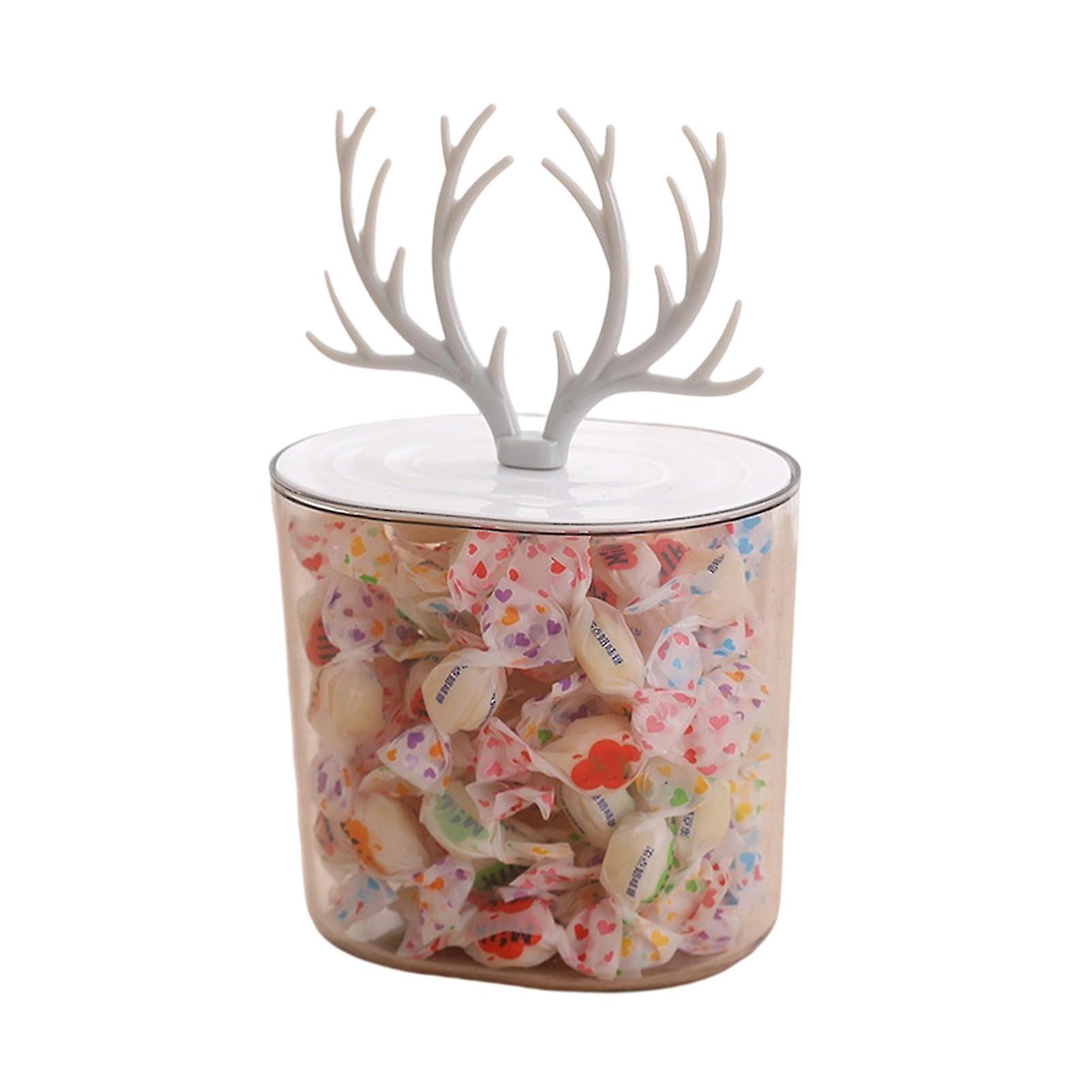 Desktop Storage Box With Antler Shape Lid Cotton Swab Container Transparent Makeup Cotton Pad(1 Pcs, Gray)
