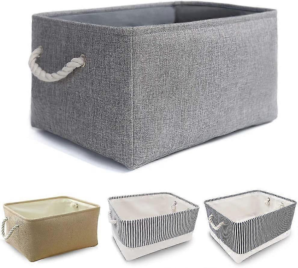 Thick Canvas Collapsible Storage Box With Rope Handles (washable, Grey, Small)