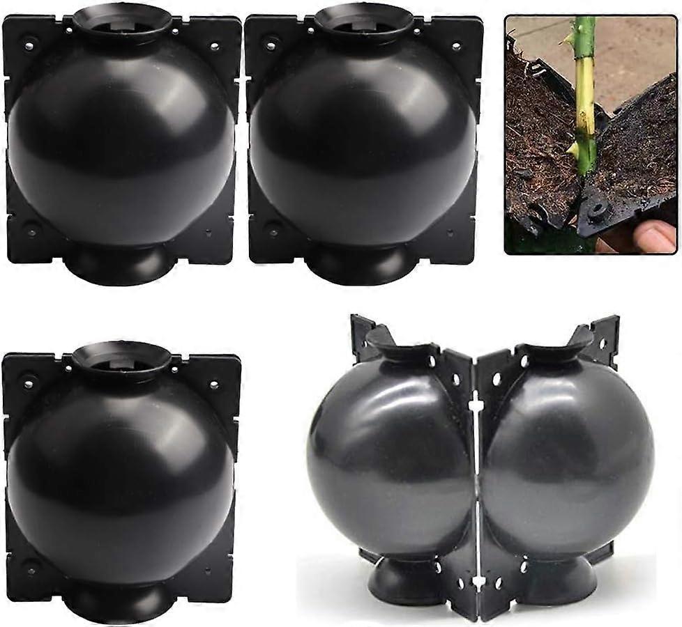 LINJOU Plant Grafting Box, 4 Pieces Plant Rooting Device, Plant High Pressure Box, Propagation Cutter Ball for Garden Growth Breeding Grafting (Black)