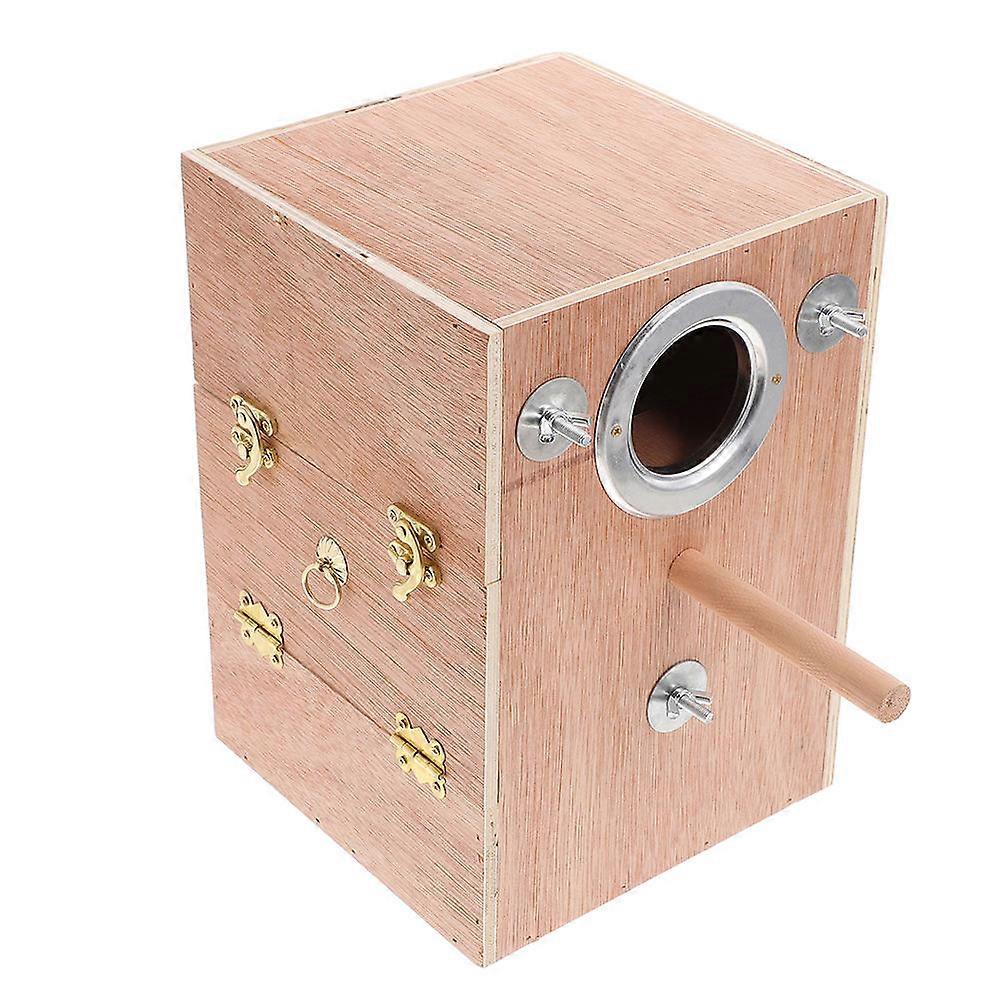 Wooden Parakeet Nesting Box with Perch Stand – Natural Breeding Cage for Lovebirds, Budgies, Conures, and Finches – Easy Installation, Cleaning, and