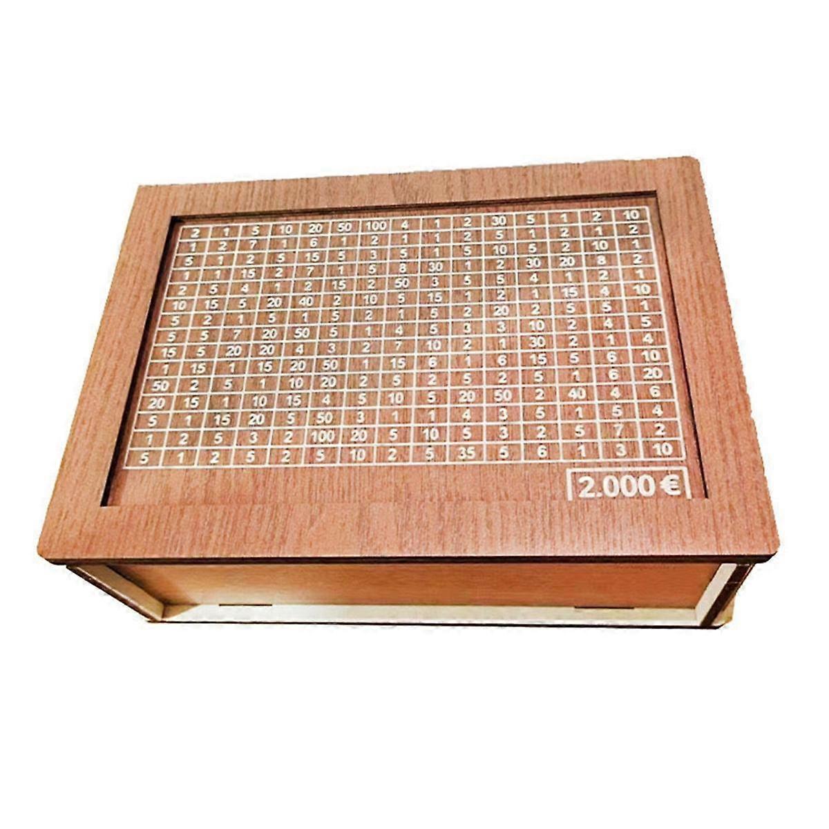 Money Saving Box, Wooden Cash for Kids and Adults, Reusable Money Box with Countdown and Money Target, Challenge 2000