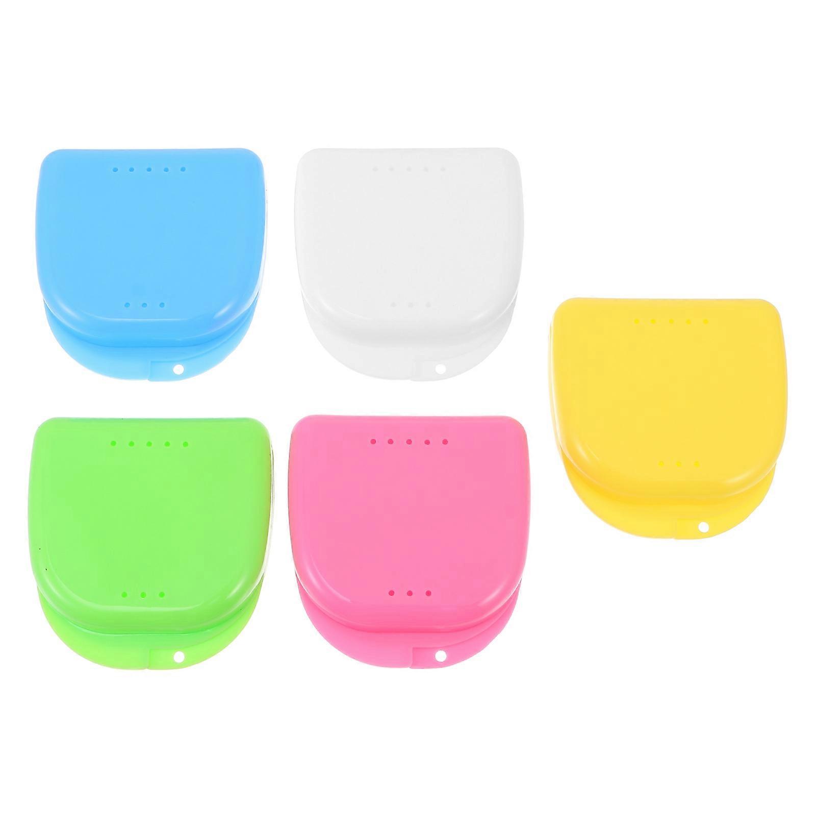 Oral Appliance Case Denture Bath Hole Box Certified For Travel 3.34X3.22X1.14In Yellow Plastic Set Of 5