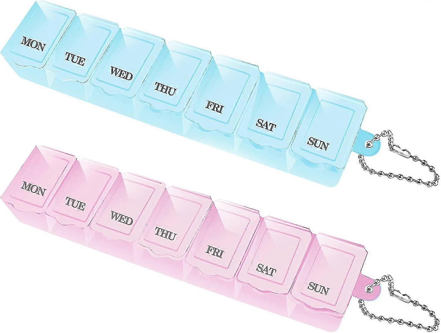 Pill Box 7 Day 2 Times A Day, Portable Pill Box Organiser Pill Case Travel Tablet Box Reminder Pill Dispensers Weekly Pill Storage Box(2pcs, Blu