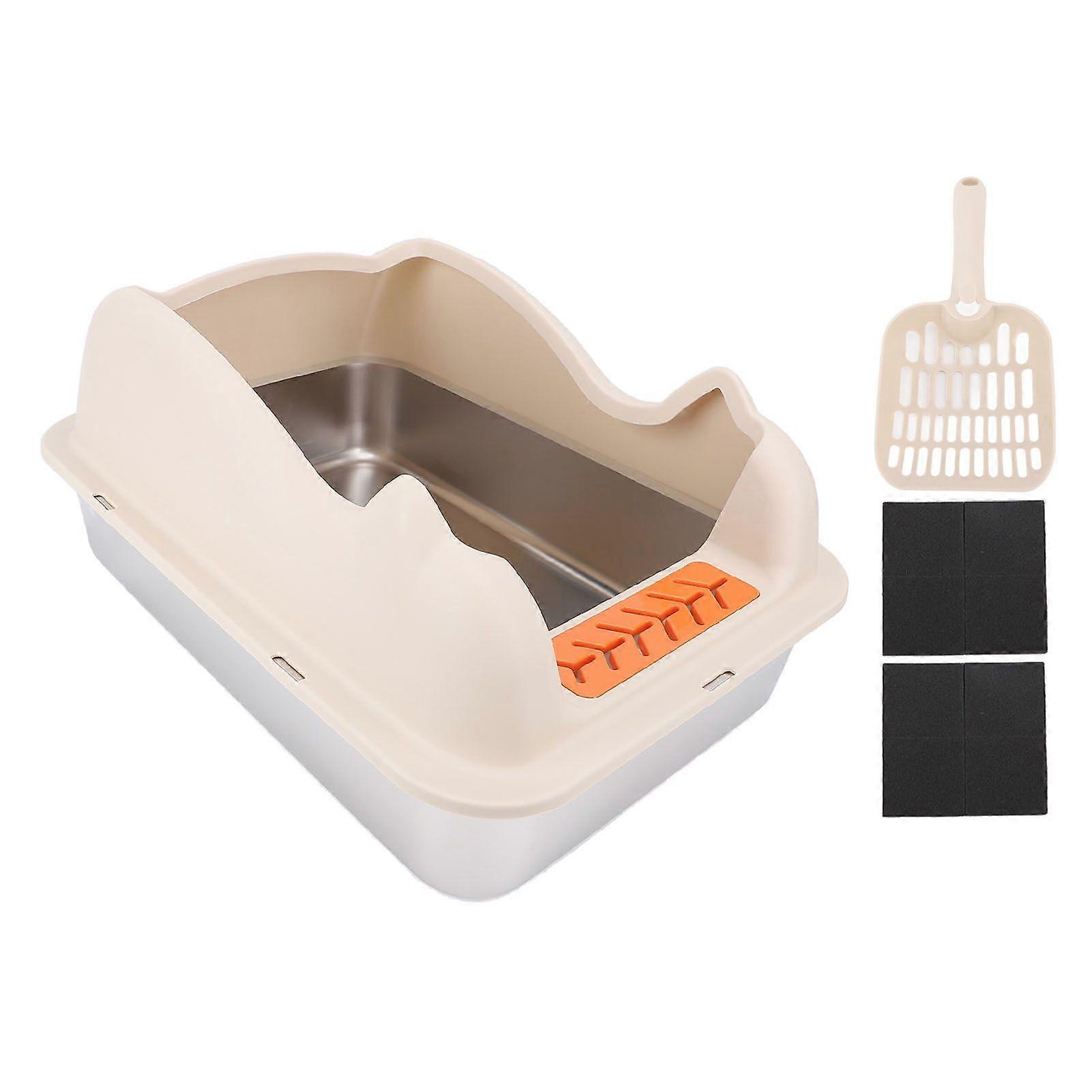Stainless Steel Cat Litter Box with Lid Easy to Clean Anti Splashing High Sided Large Metal Kitty Litter Box Khaki