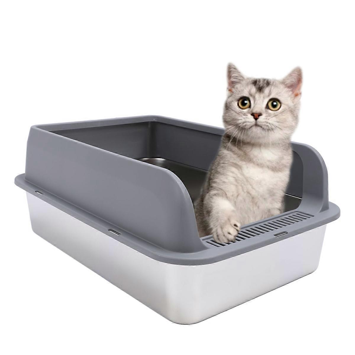 Stainless Steel Litter Box Anti Splashing Easy to Clean High Sides Semi Enclosed Cat Litter Box with Lid for Cats Grey