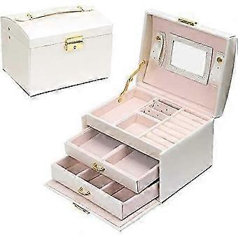 Jewelry Box, Jewelery Box Jewelry and Cosmetic Makeup Box 3-Layer Faux Leather Beauty Case with 2 Drawers, Mirror and Lock