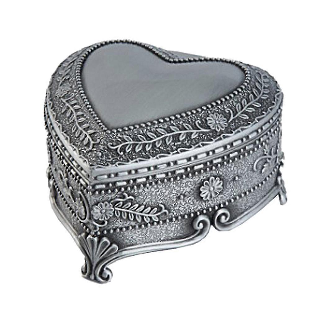 Jewelry Box for Women Vintage Jewelry Case Heart Shape Design Silver 8 x 5cm Storage Display Protection 1Pack