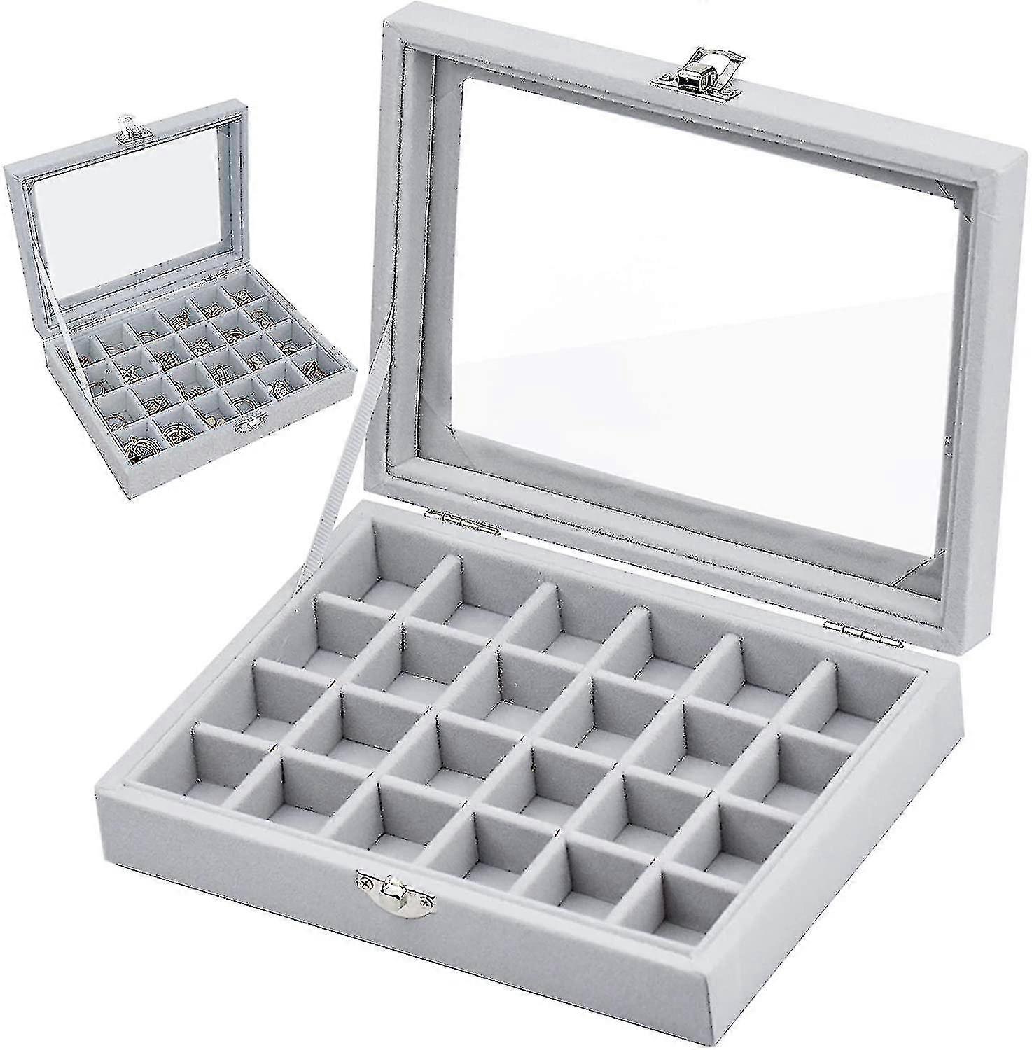 Jewelery Box With 24 Compartments, Jewelery Chest, Display With Clear Glass