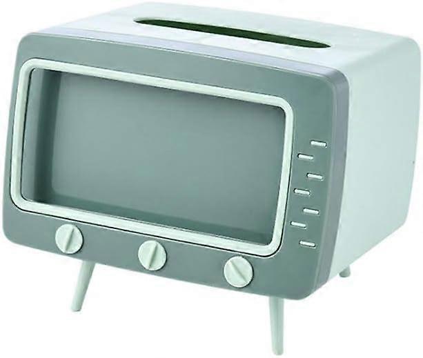 tissue box, cute, vintage, TV shaped remote control rack, phone stand (green) ESk