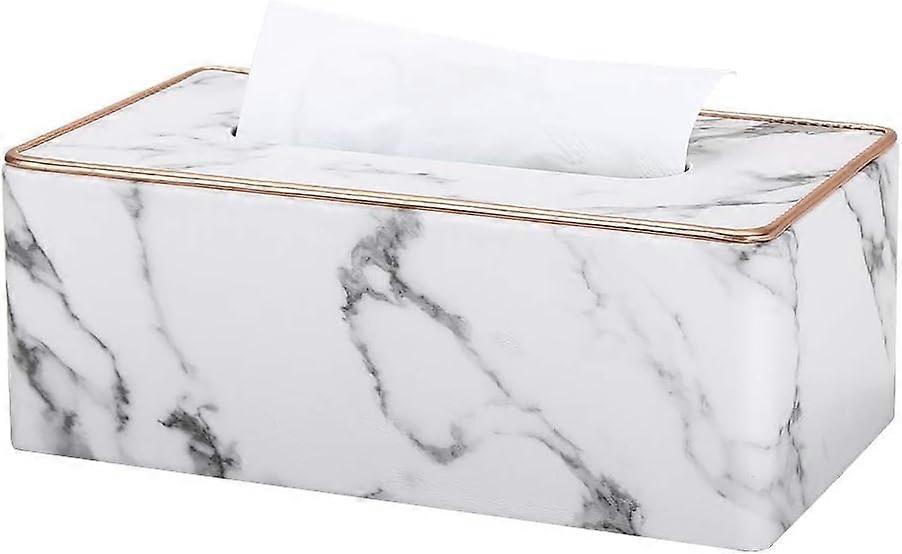 Rectangular Leather Tissue Box (Gray Marble Pattern)