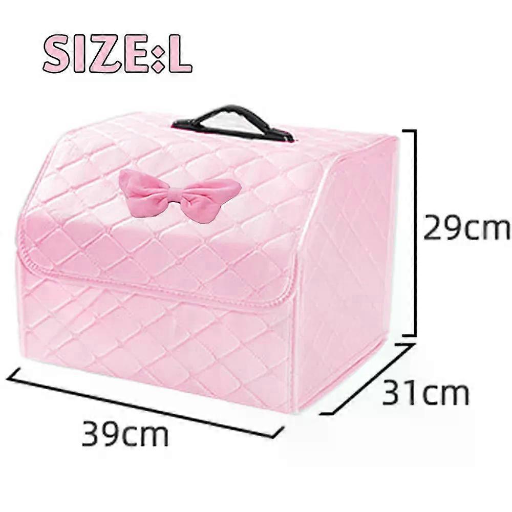 Pink Pu Leather Car Trunk Organizer Box Large Capacity Auto Multiuse Tools Storage Bag Stowing Tidying Leather Folding Organizer