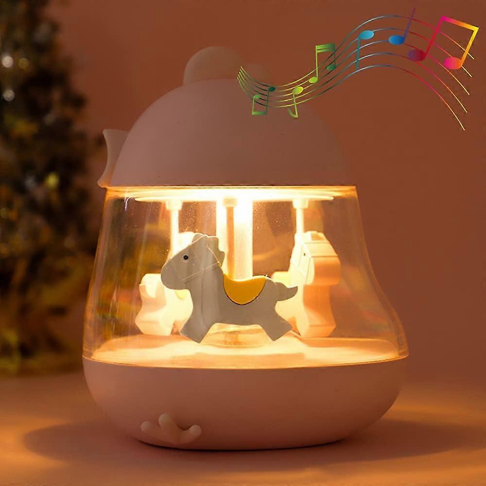 Carousel Music Box Night Light for Kids, Cute Baby for Toddler, USB Rechargeable & Dimmable & Portable