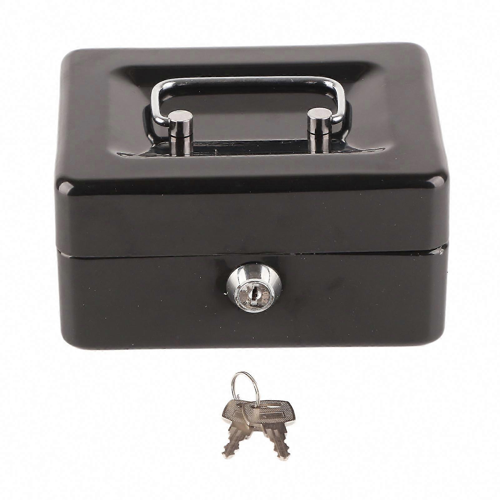 High-Security Metal Cash Box with 6 Compartments, Money Tray & Key Lock for Home or Business - Black