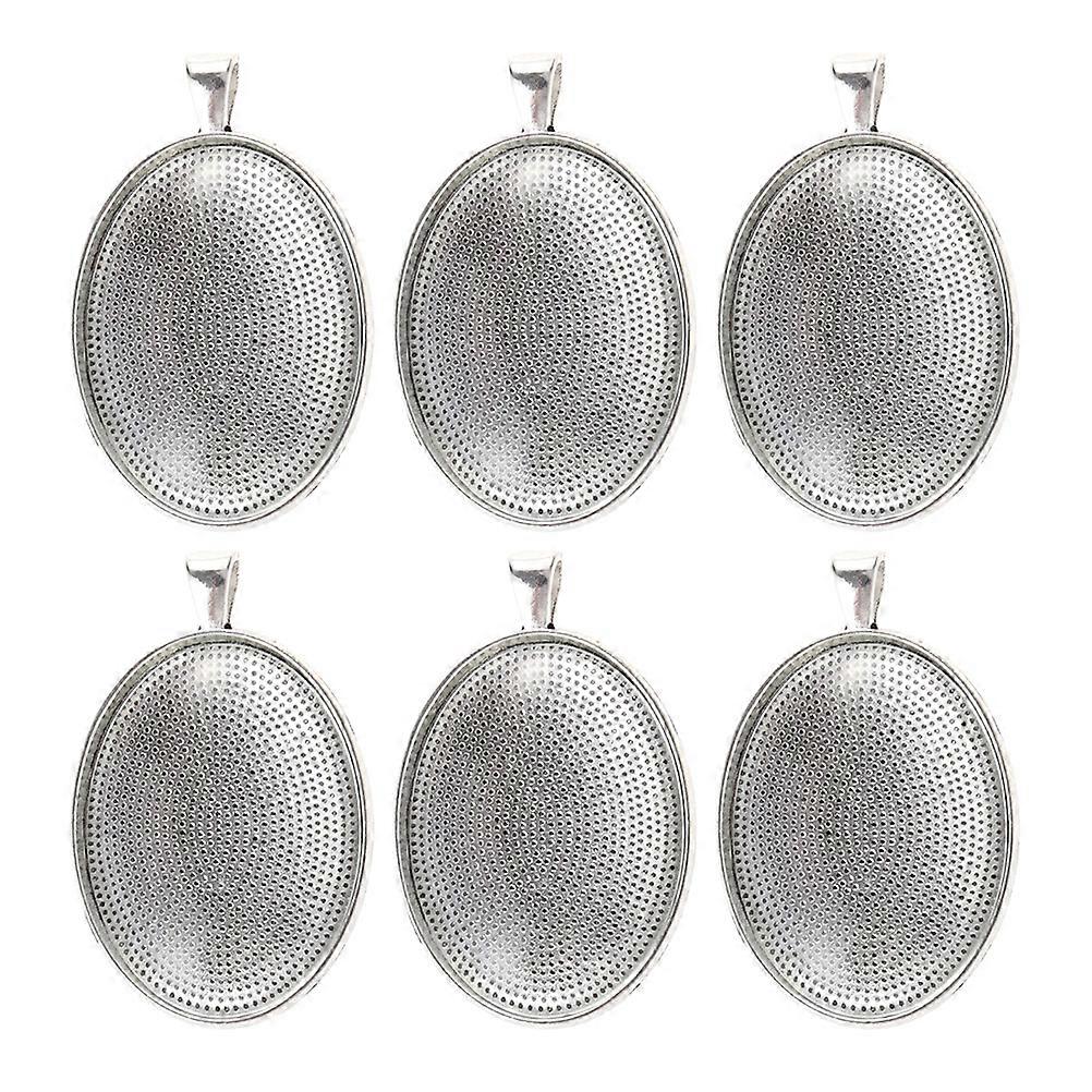 Oval Pendant Trays for Jewelry Making Accessories 6pcs Silver Color