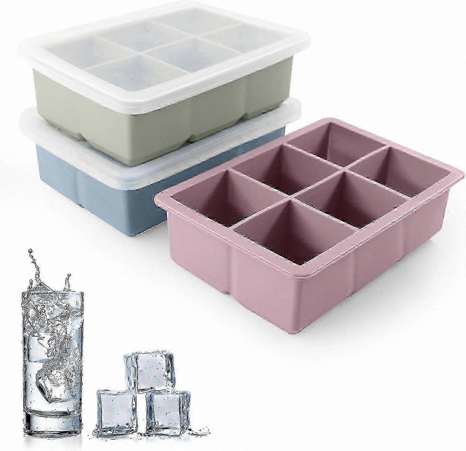 Large Silicone Ice Cube Trays 3-Pack, Square Mold with Leak-Proof Lid, BPA-Free for Cocktails